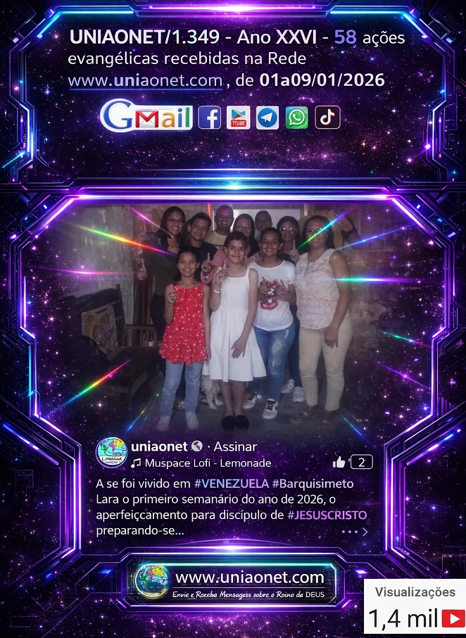 , de 01a09/01/2026O conteúdo integral está disponível no Portal , é de livre reprodução . Caso sua mensagem (ou alguma outra que voce recebe) não conste deste informativo favor nos reenviá-la . Necessitamos de estar em comunhão com o corpo de CRISTO , compartilhe conosco o que Deus tem feito no seu dia a dia , na sua igreja , no seu bairro , cidade ... II
